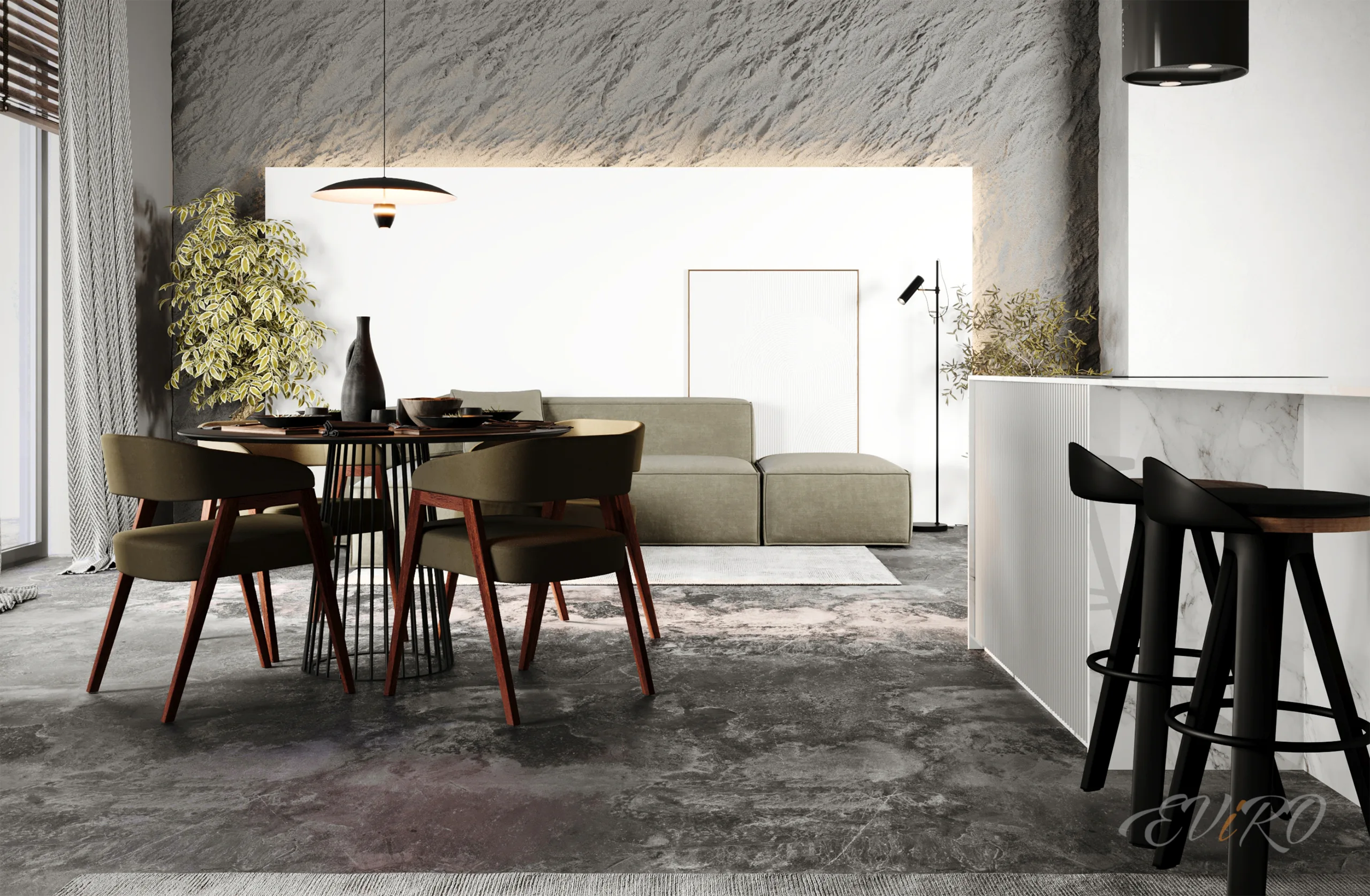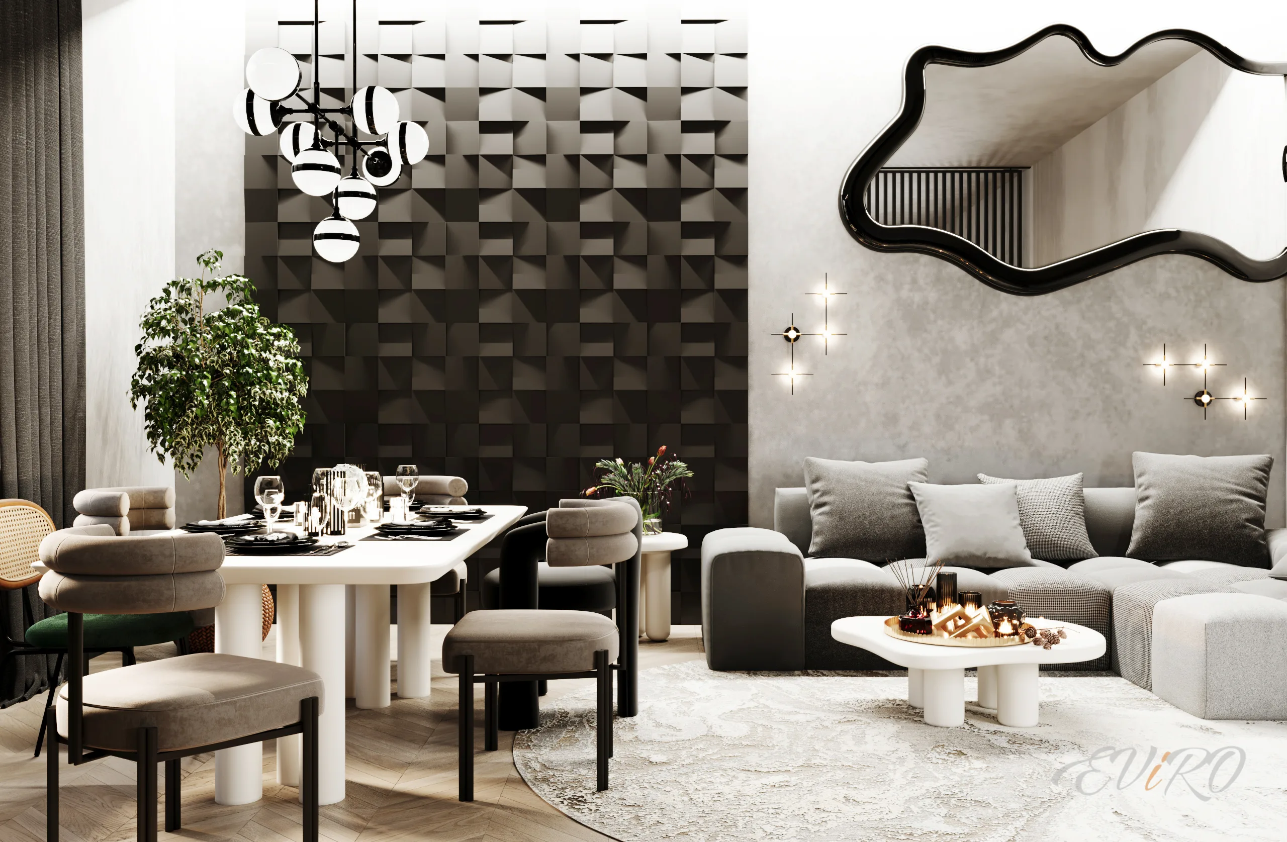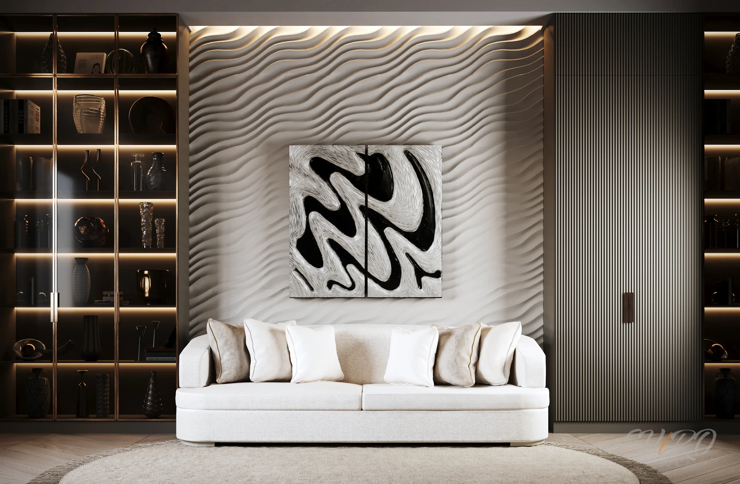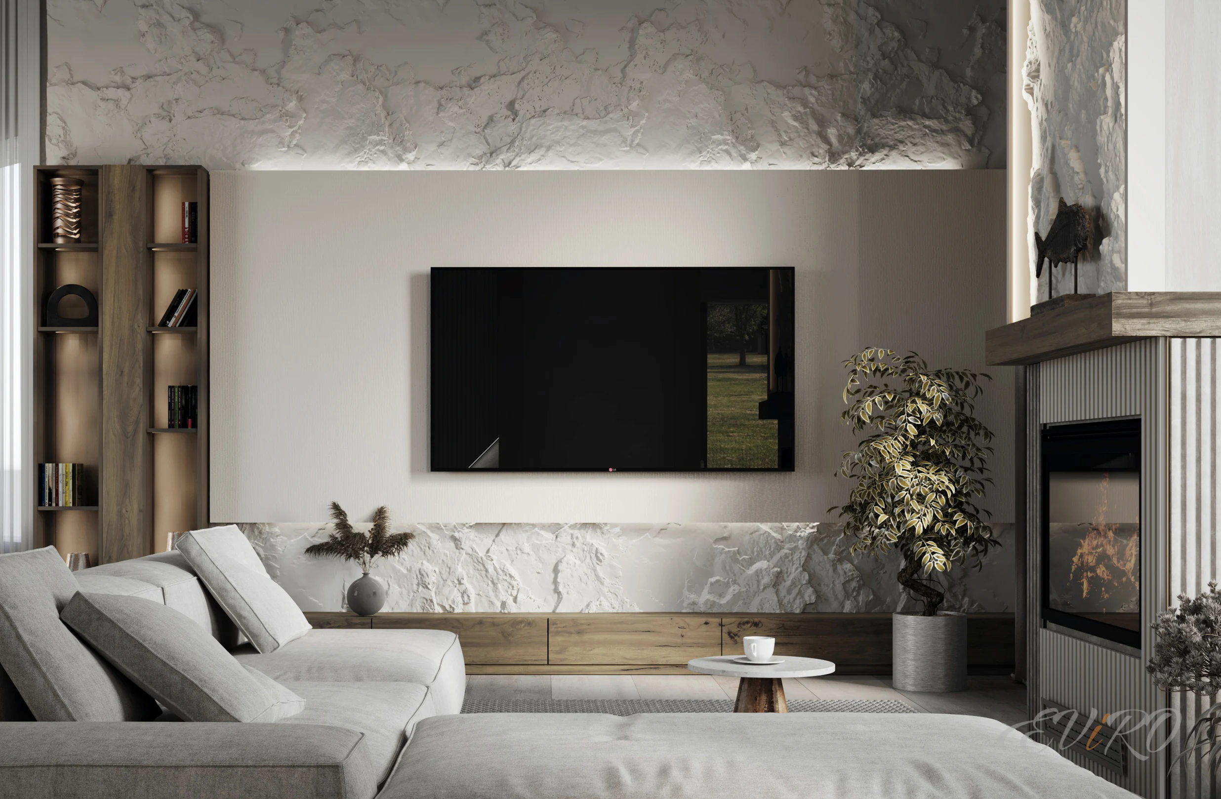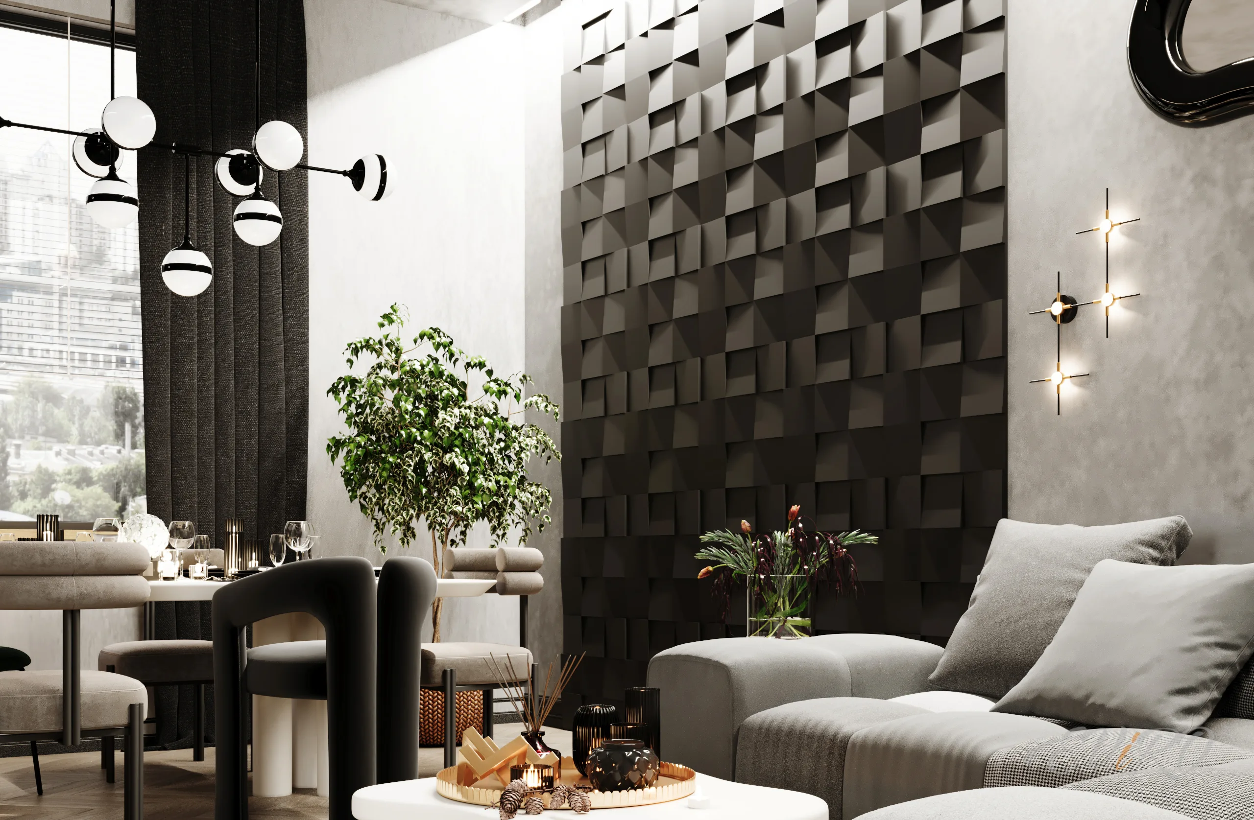 Вариант 2. Оформление зоны гостиной 3D панелями