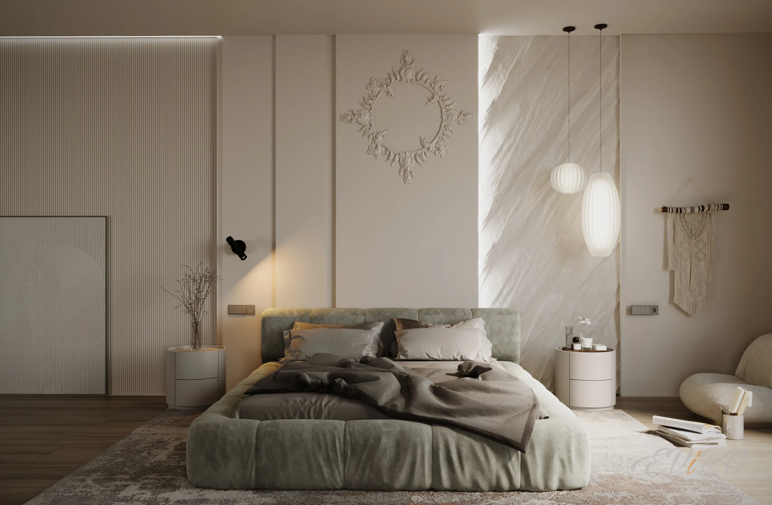 Вариант 1. Оформление спальни в зоне изголовья