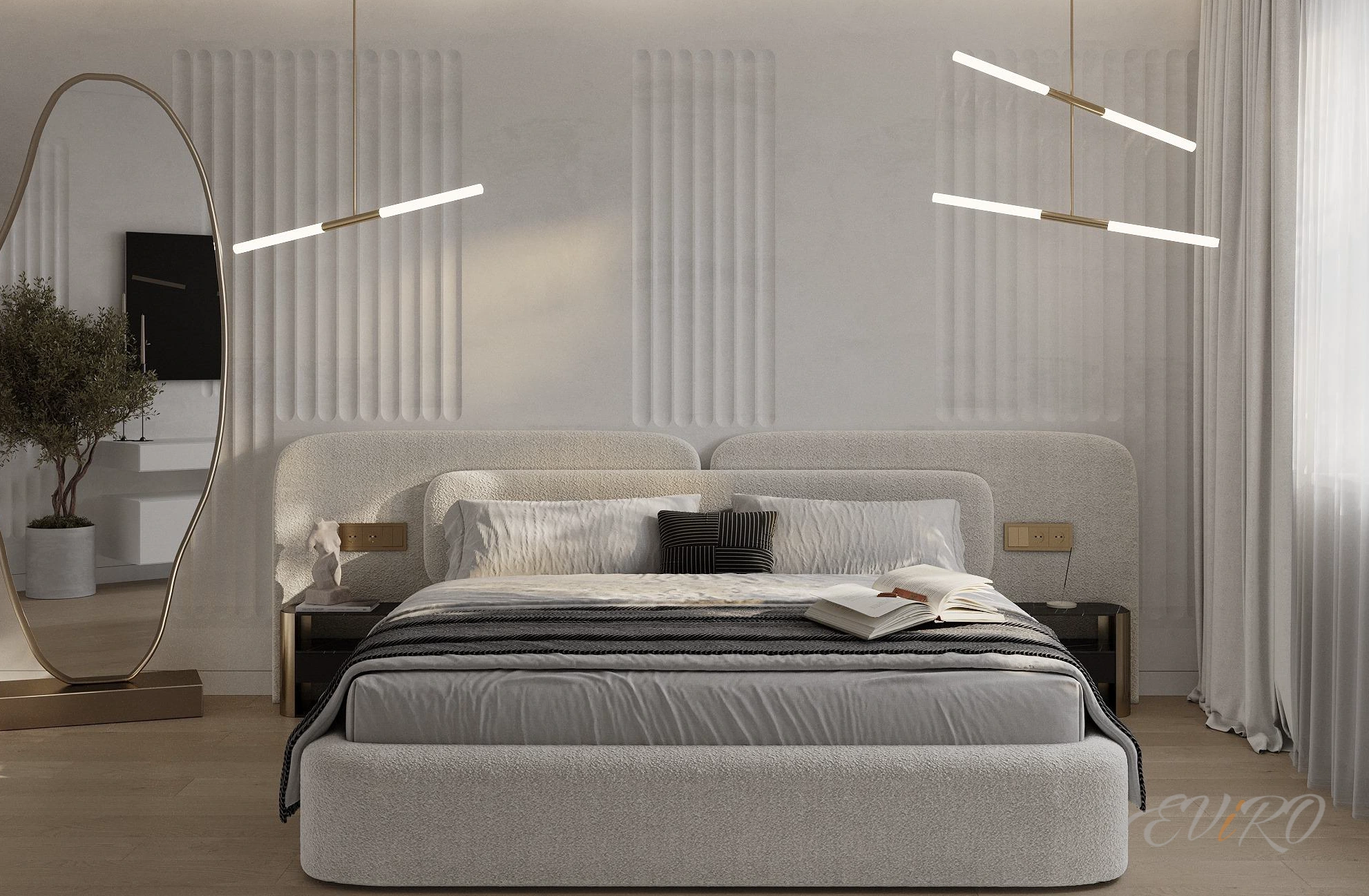 Коллекция гипсовых 3D панелей Eviro Спарта – это симфония изысканности и качества, застывшая в гипсе. Вертикальные линии этих панелей преобразят стены спальни, окутав пространство уютом и наполнив его неповторимой элегантностью.