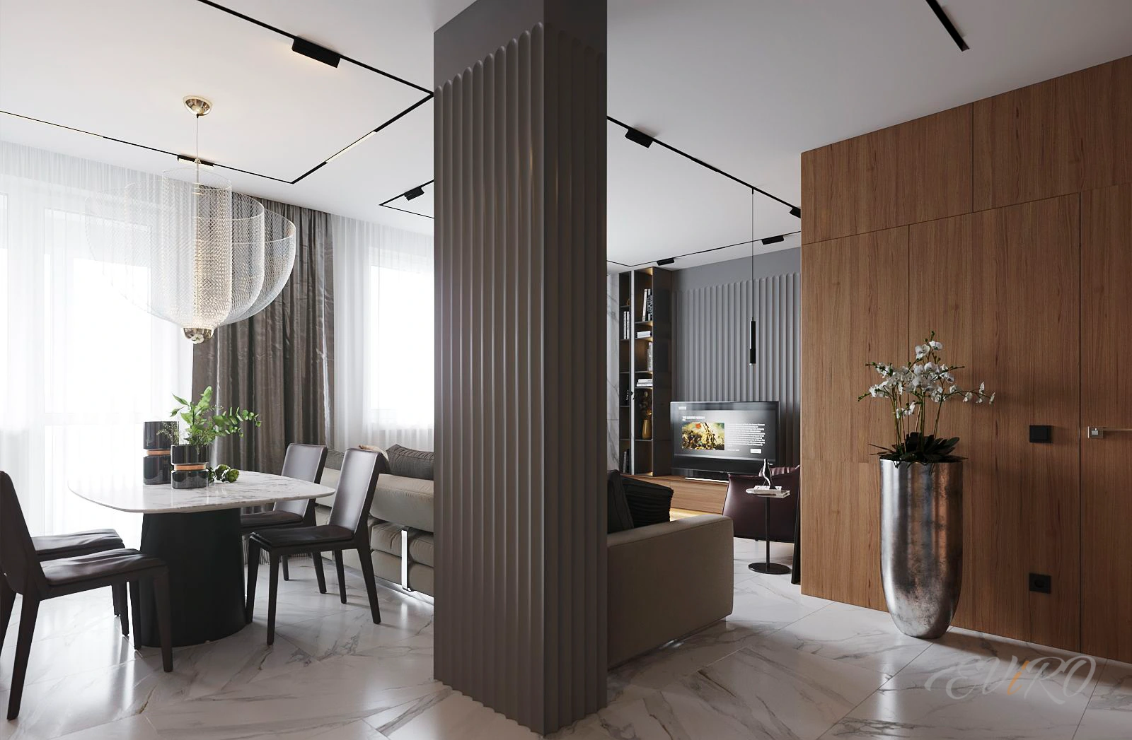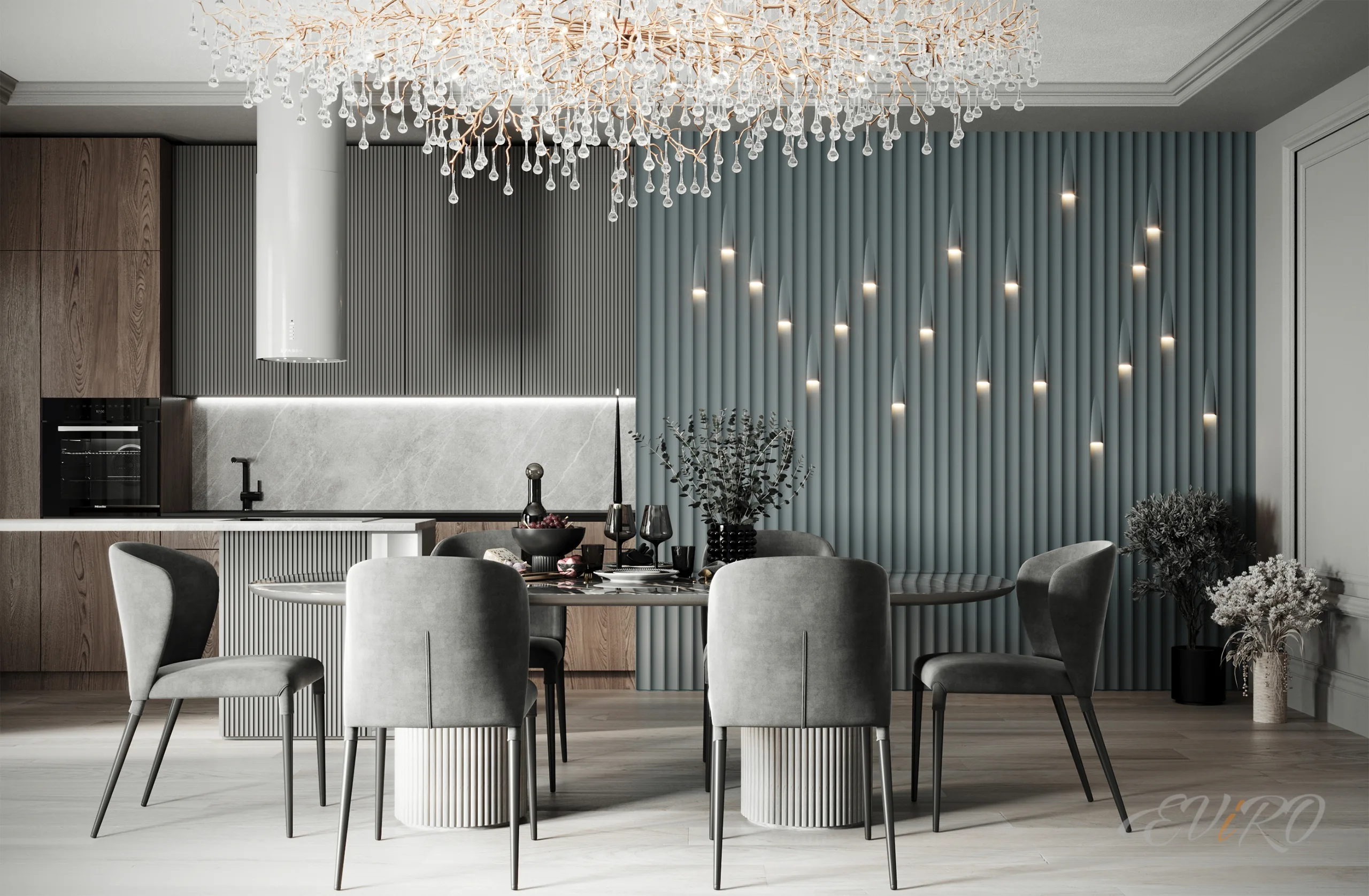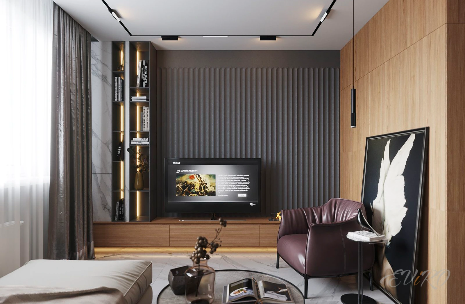 Вариант 7. Дизайнерские 3D панели рейки с подсветкой гостиной